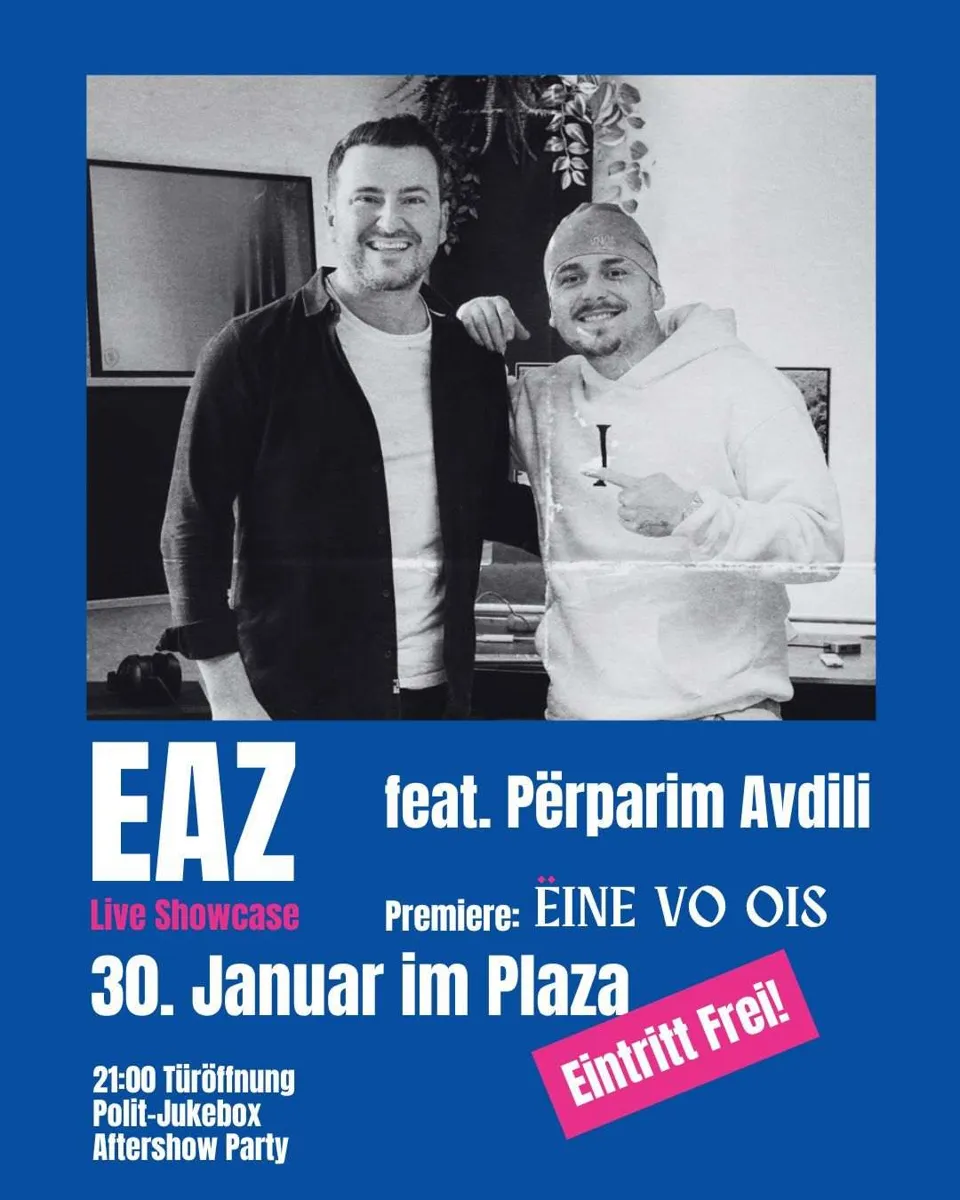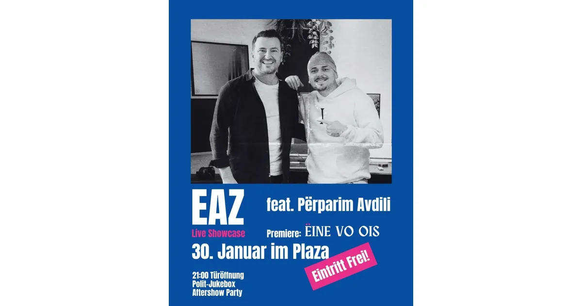 Höhepunkt der Show ist die Premiere seines neuen Songs «Eine vo ois», den EAZ für den Zürcher Stapi-Kandidaten Përparim Avdili geschrieben hat. Weil ihn dessen Biografie gleichsam inspiriert und an die eigene erinnert....